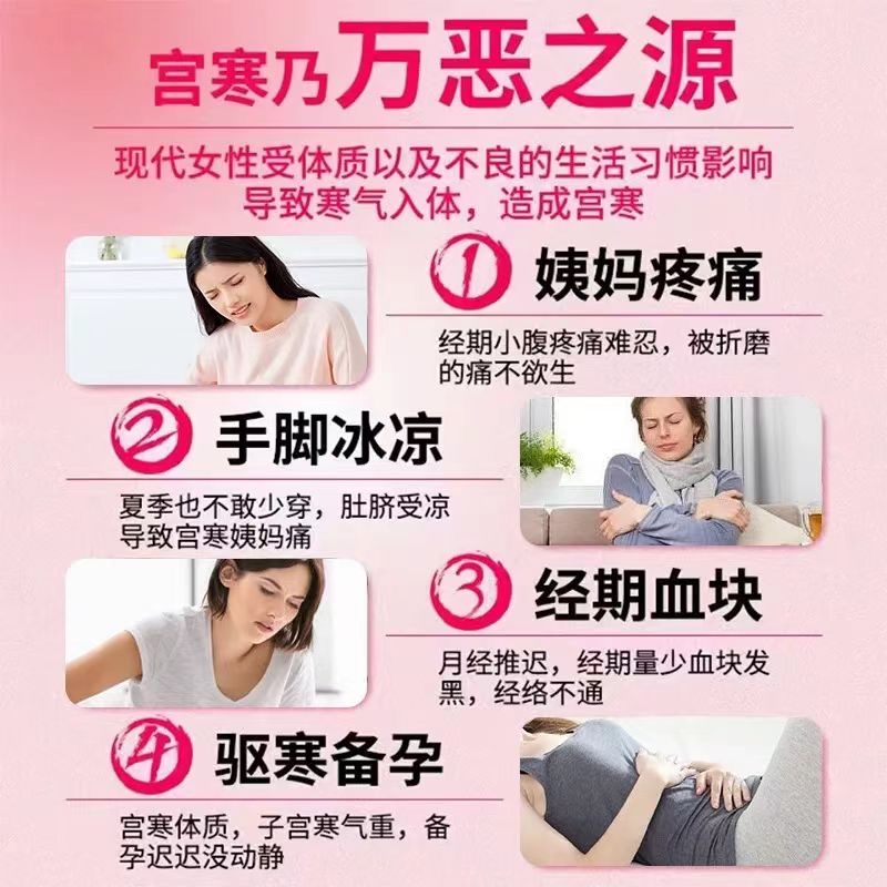 • 多靶点缓解痛经:结合温热散寒(改善血瘀)、抗痉挛(直接止痛)、抗炎(减少前列腺素)和内分泌调节(长期调理),形成协同效应。