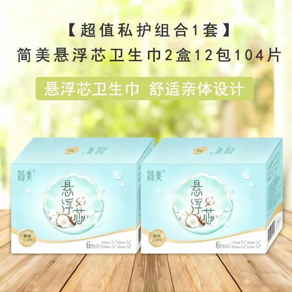 【卫生巾套装】简美悬浮芯卫生巾2盒12包104片|护垫、日用、夜用、超长组合套装|消字号姨妈卫生巾