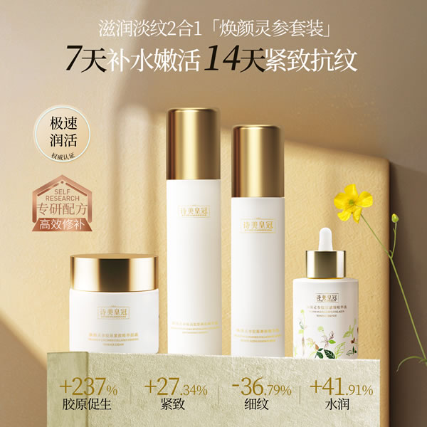 【诗美皇冠】焕颜灵参系列 精华露120ml|精华乳100ml|精华霜70g|精华液30ml|四件套装
